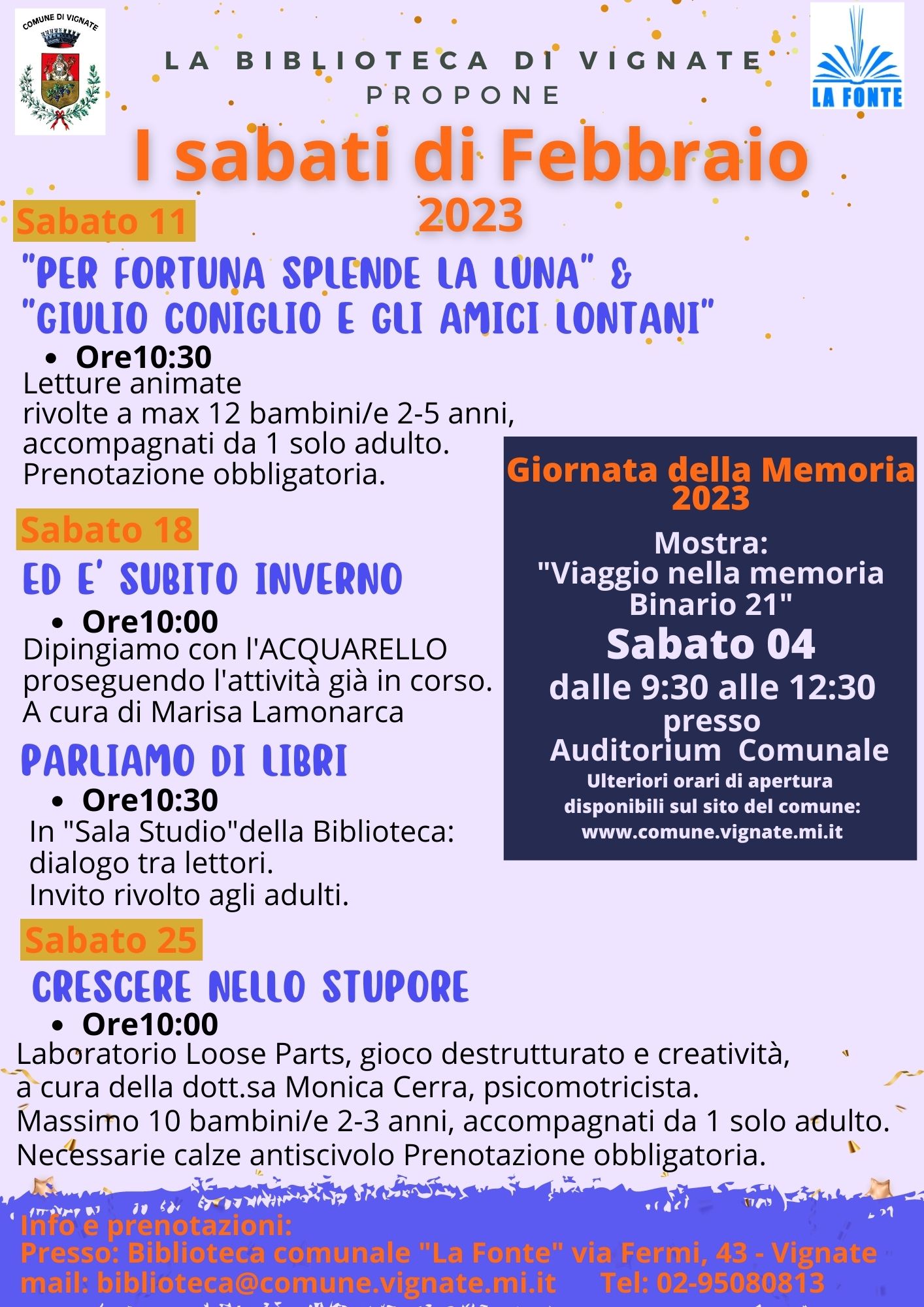 TEL. 02 95080813 – EMAIL biblioteca@comune.vignate.mi.it