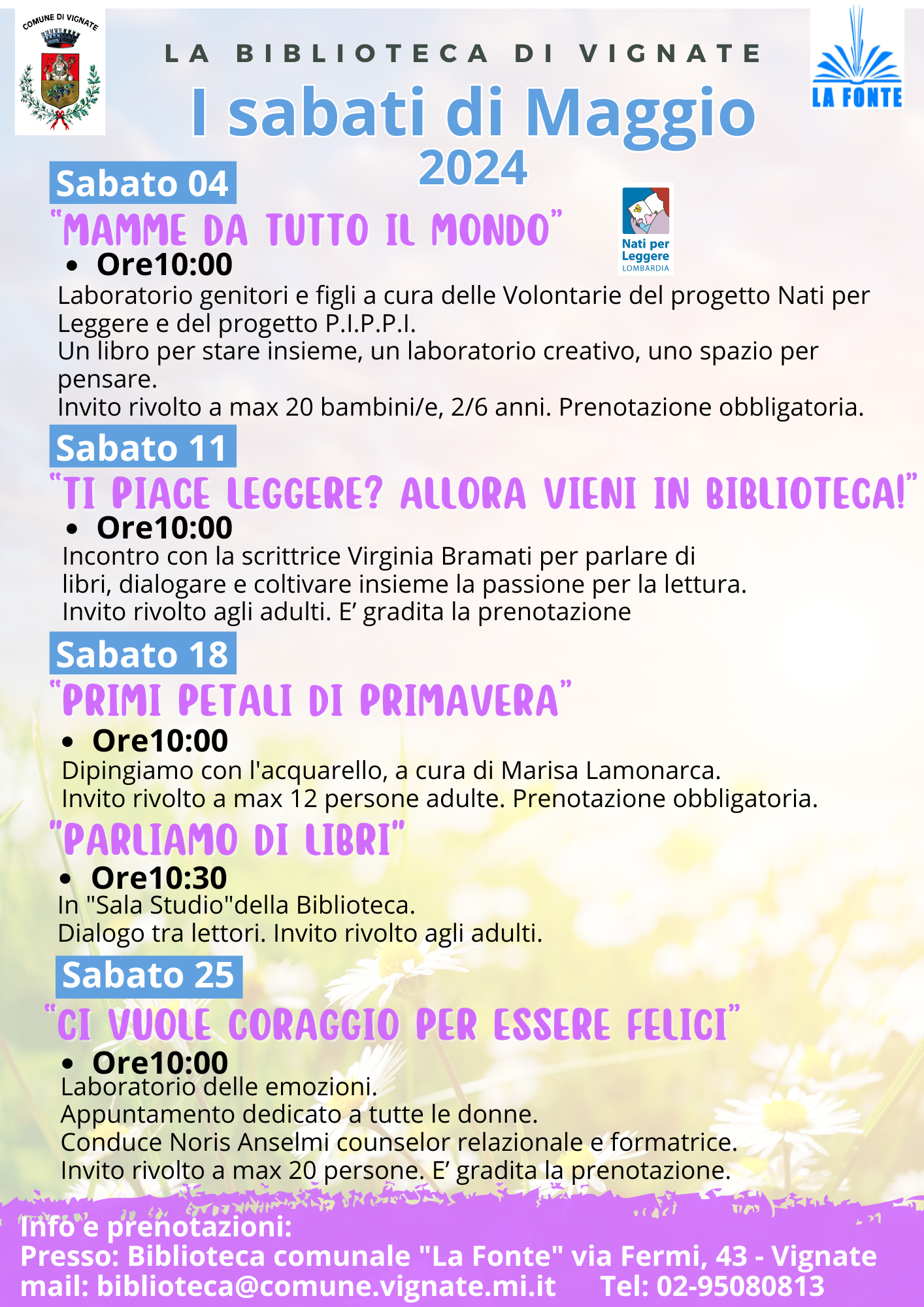 Presso: Biblioteca comunale ” La Fonte” via Fermi, 43 – Vignate mail: biblioteca@comune.vignate.mi.it Tel:02-95080813