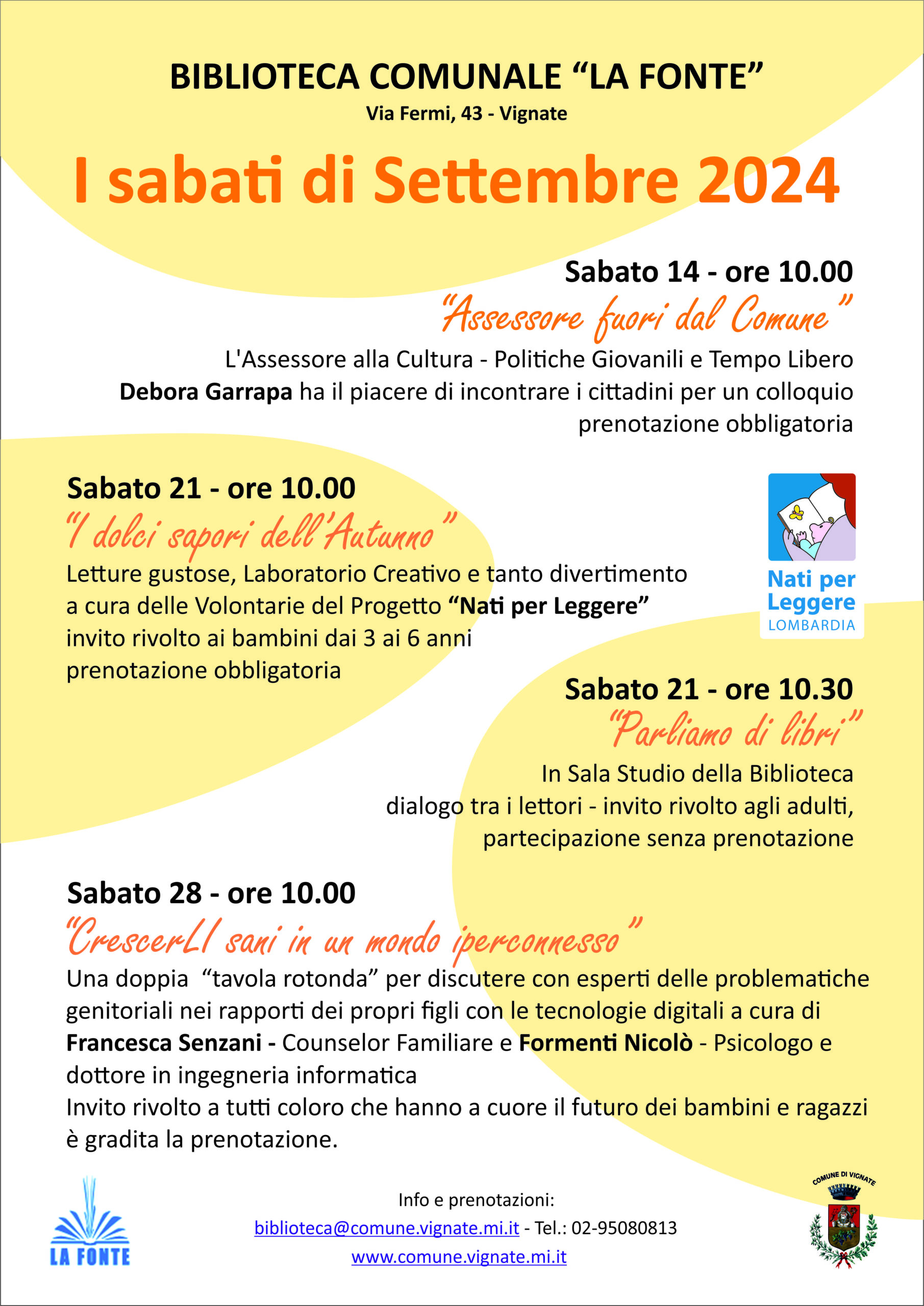 Presso: Biblioteca comunale ” La Fonte” via Fermi, 43 – Vignate mail: biblioteca@comune.vignate.mi.it Tel:02-95080813