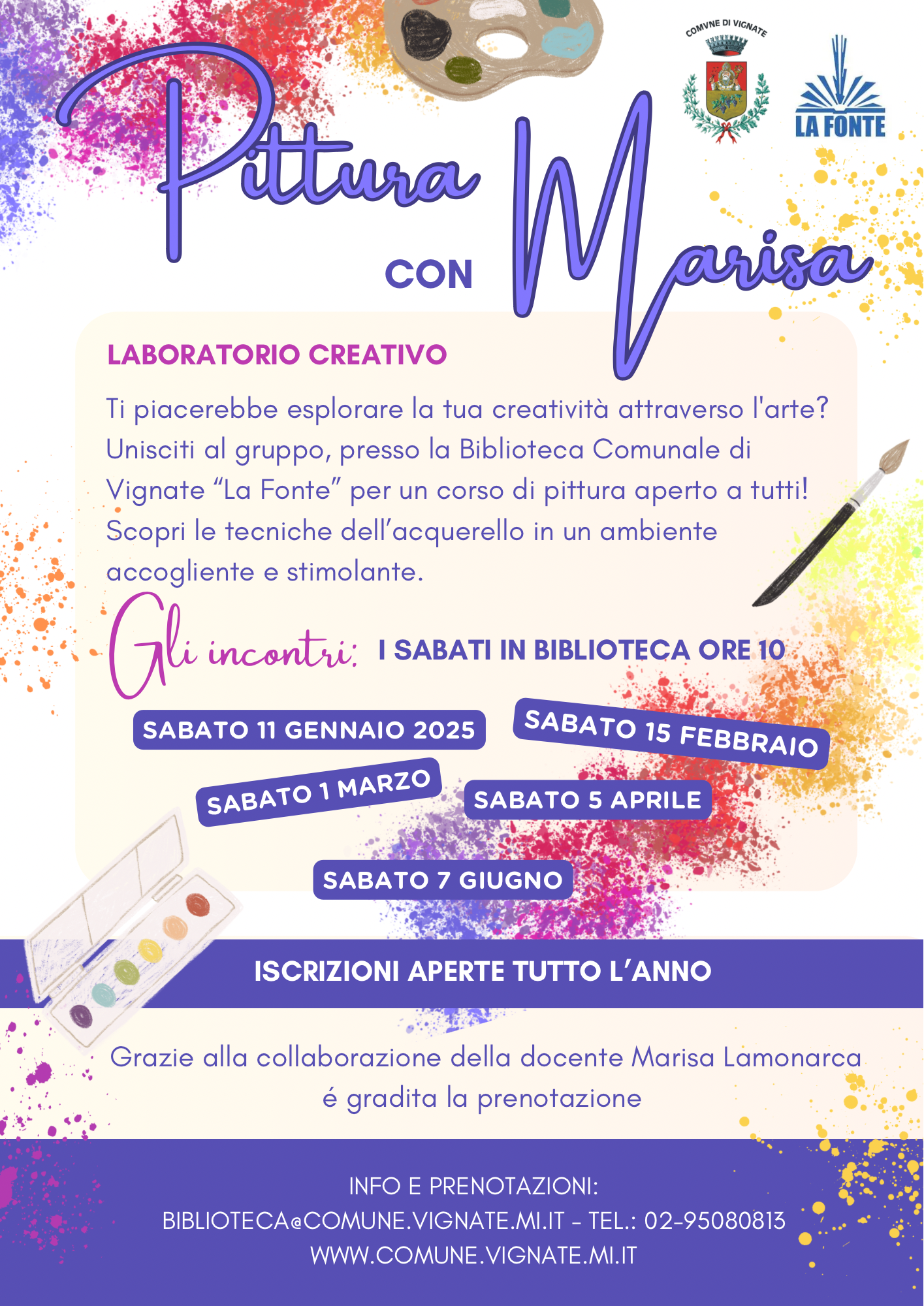 Info e iscrizioni biblioteca@comune.vignate.mi.it – telefono: 02-95080813