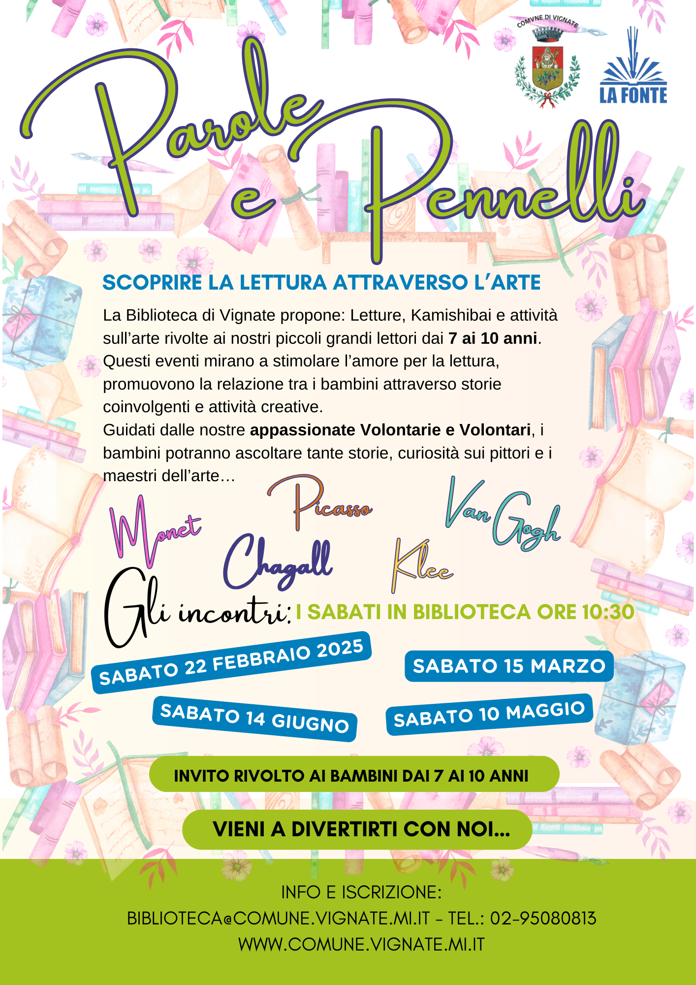 La Biblioteca di Vignate propone: Letture, Kamishibai e attività sull’arte rivolte ai nostri piccoli grandi lettori dai 7 ai 10 anni.
